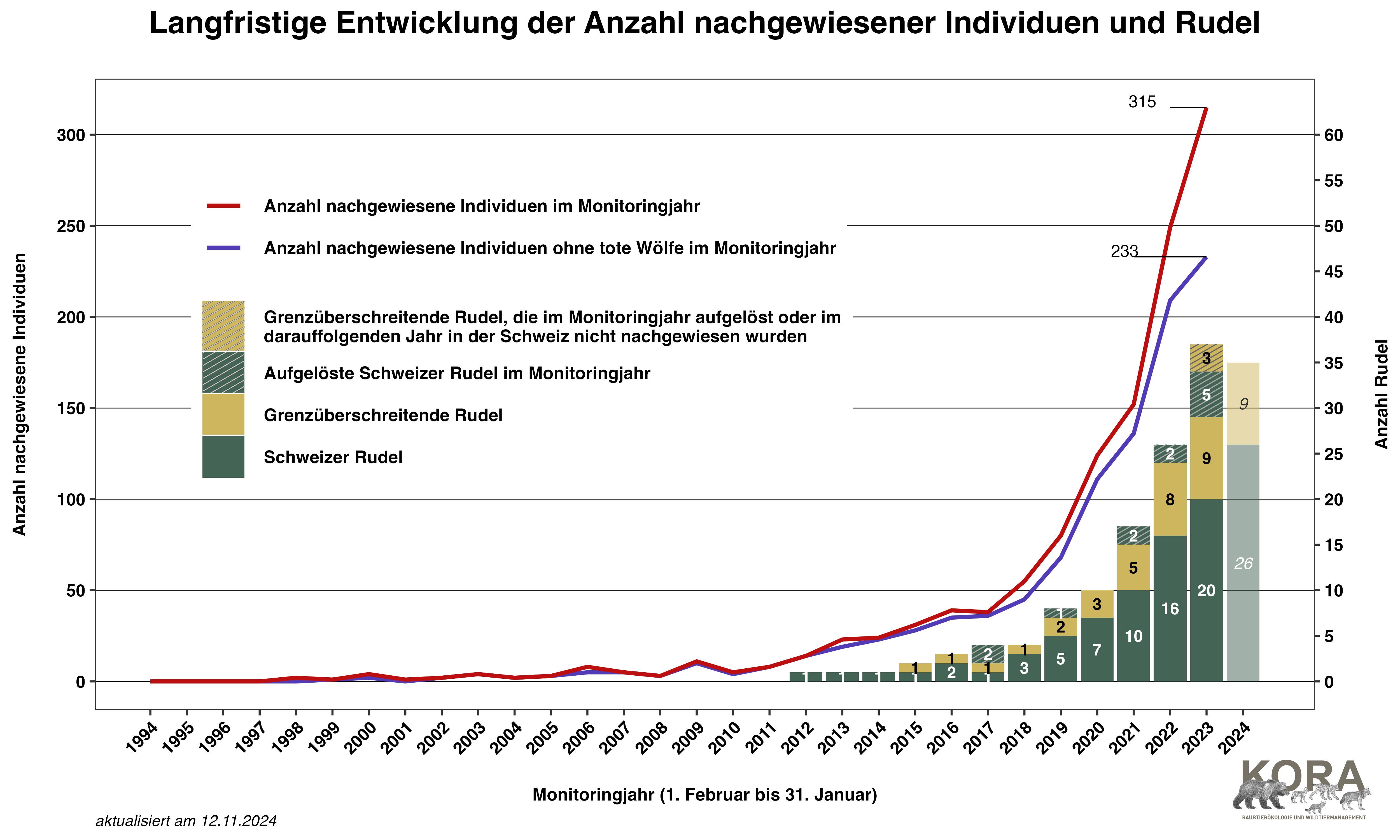 Im Rahmen der regulären Aktualisierung der Rudelsituation in der Schweiz und in Liechtenstein sind ab sofort die neuen offiziellen Grafiken verfügbar.