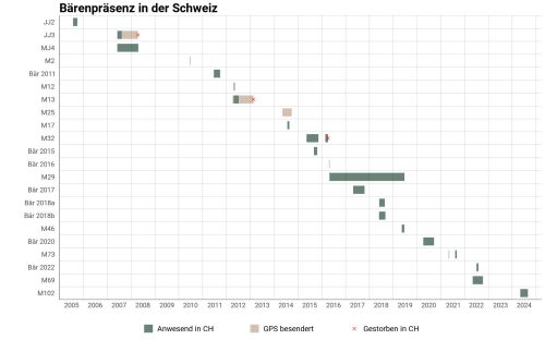 Am 28. Juli 2005 fotografierte ein Student aus Deutschland im Schweizerischen Nationalpark einen Bären – der erste Bär in der Schweiz seit 100 Jahren! Seit 2005 konnten fast jedes Jahr Bären im Engadin und der Nationalpark Region nachgewiesen werden, bisher besteht aber keine residente Population. Keiner der eingewanderten Bären ist permanent in der Schweiz sesshaft geworden. Jeder einwandernde Bär wird soweit möglich mit genetischen Methoden individuell identifiziert. Eine Machbarkeitsstudie hat ergeben, dass auch in der Schweiz geeignete Habitate zur Verfügung stehen. Der Raum zwischen dem Trentino und den Bündner Alpen ist durchgehend gebirgig, waldreich und naturnah und bildet einen Korridor zwischen dem schweizerischen und dem italienischen Nationalpark. Es war deshalb von Beginn an denkbar, dass einzelne Bären aus diesem Gebiet mittelfristig in die Schweiz einwandern werden.