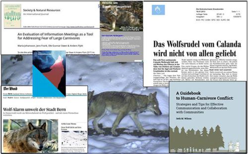 von Arx M., Imoberdorf I. & Breitenmoser U. 2020. How to communicate wolf? Communication between the authorities and the population when wolves appear. In: „Encounters with Wolves. Dynamics and Futures“/Begegnungen mit Wölfen, Kleine Reihe des Sorbischen Instituts Bautzen, Band 32, pp. 124-136, Hose S. & Heyer M. (Hrsg.).