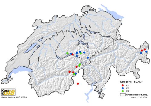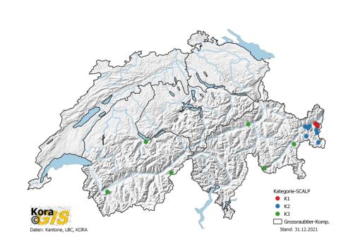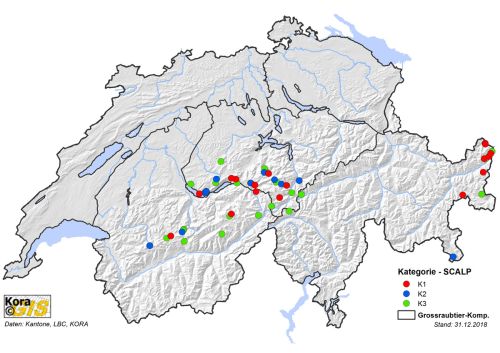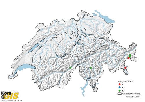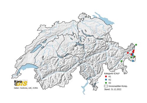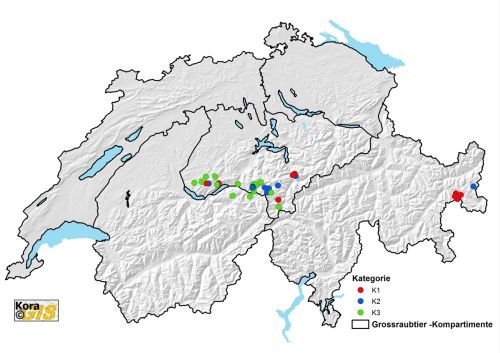 Data © LBC, Kantone, KORA; map © KORA/GIS