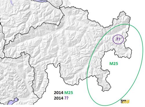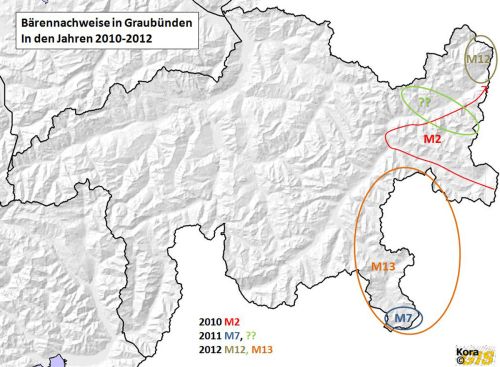 There is no resident population of brown bears in Switzerland. The map shows where immigrated individuals were staying in 2014.