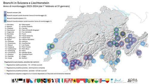 Dati e analisi: LBC, Cantoni, KORA; mappa: © KORA/Swisstopo